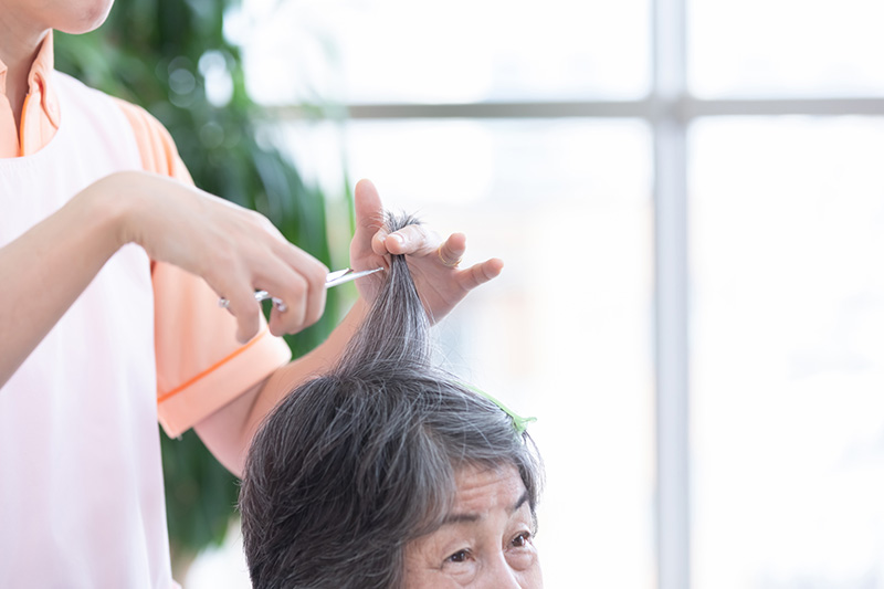 訪問美容とは、ご高齢で移動が困難な方や障害をお持ちの方など、店舗にお越しになるのが難しい方に向けて、直接ご自宅や施設に訪問して理美容のサービスを提供することを目的としています。ライフパートナー・TUGでは、主にヘアカットサービスをさせていただいております。